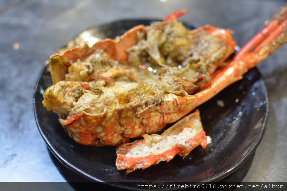 龍蝦上桌已經先剖半,看得到新鮮晶瑩的肉質。