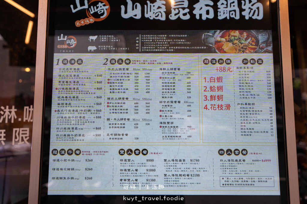 山崎昆布鍋物藝文店菜單 (來源:山崎昆布鍋物藝文店FB粉絲頁,2022.12)