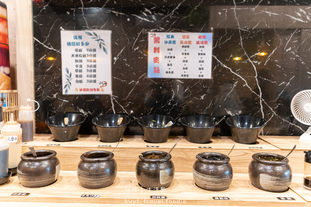 自助醬料區備有10幾款的調味料可按照個人口味喜好自行調配。