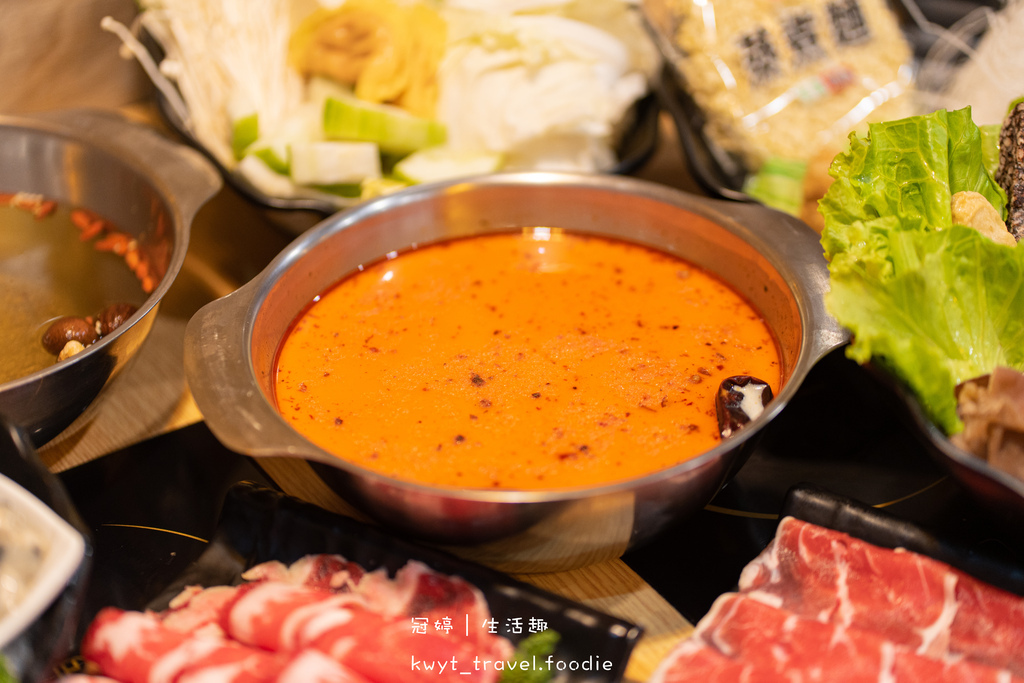 使多種中藥材、食材熬煮數小時,擁有馥郁麻辣香氣,加入牛奶的四川麻辣牛奶湯底辣感蠻溫順的,用來涮肉超~搭!