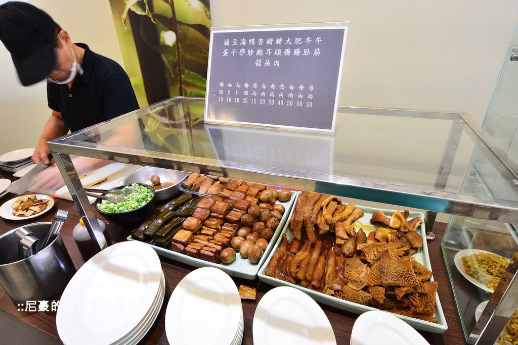 ▲除了有盤裝自取的小菜,還有些秤重的滷味