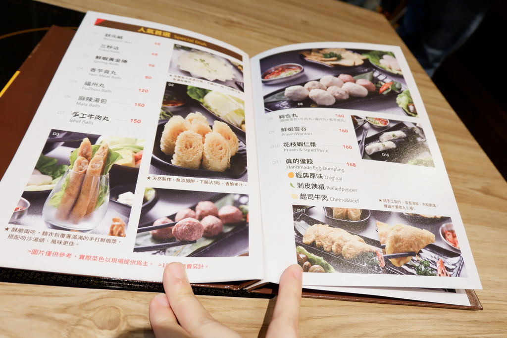 就連吃火鍋一定要吃的火鍋料也讓人大開眼界,推薦大家點一秒入鍋即煮即食的狀元紙、綜合丸(香芋貢丸、福州丸、麻辣湯包、手工牛肉丸)、鮮蝦雲吞、有三種口味(經典原味、剝皮辣椒、起司牛肉)的真的蛋餃、魚卵湯包、蟳肉管等,每一個餐點都讓人看了非常想吃!