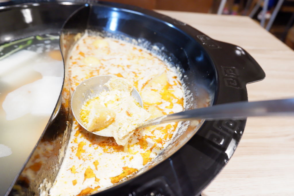 說真的像北部這樣多雨潮濕陰冷的環境,很適合來吃叻沙火鍋來暖和身子,祛寒補身,而且鴛鴦鍋的太極形狀有著兩種口味,即使吃不慣南洋叻沙的台灣人也能享受著ABC蔬菜湯,精選十幾種蔬菜熬製的蔬菜清湯,湯底有大量的紅蘿蔔、馬鈴薯、白蘿蔔,甘醇入口好喝~~