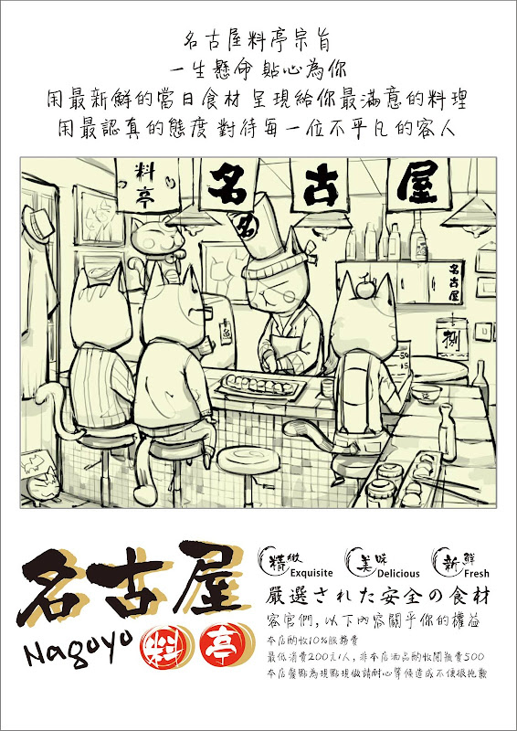 <店家資訊>名古屋料亭地址:新竹市中正路96巷4號1F電話:03-5277155營業時間:11:00–14:00(週六~週日)、17:30–03:00(週二~周日) 周一公休