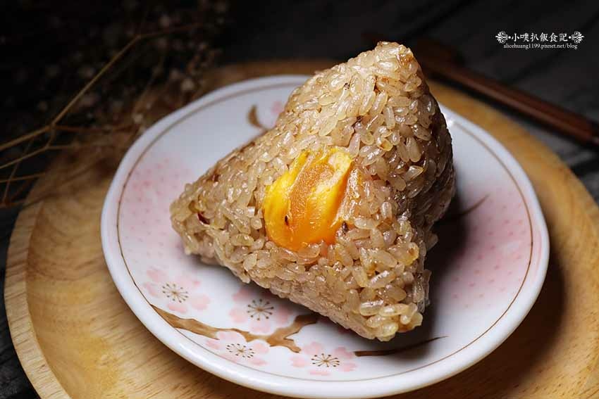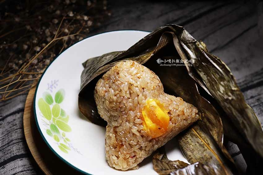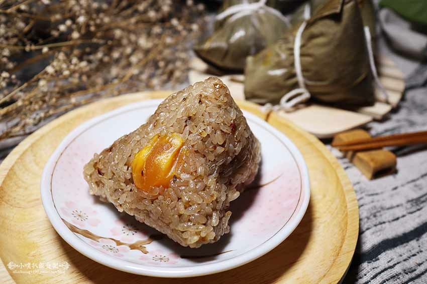 蛋黃肉粽與米香粽,不同的是多了美味的鹹蛋黃