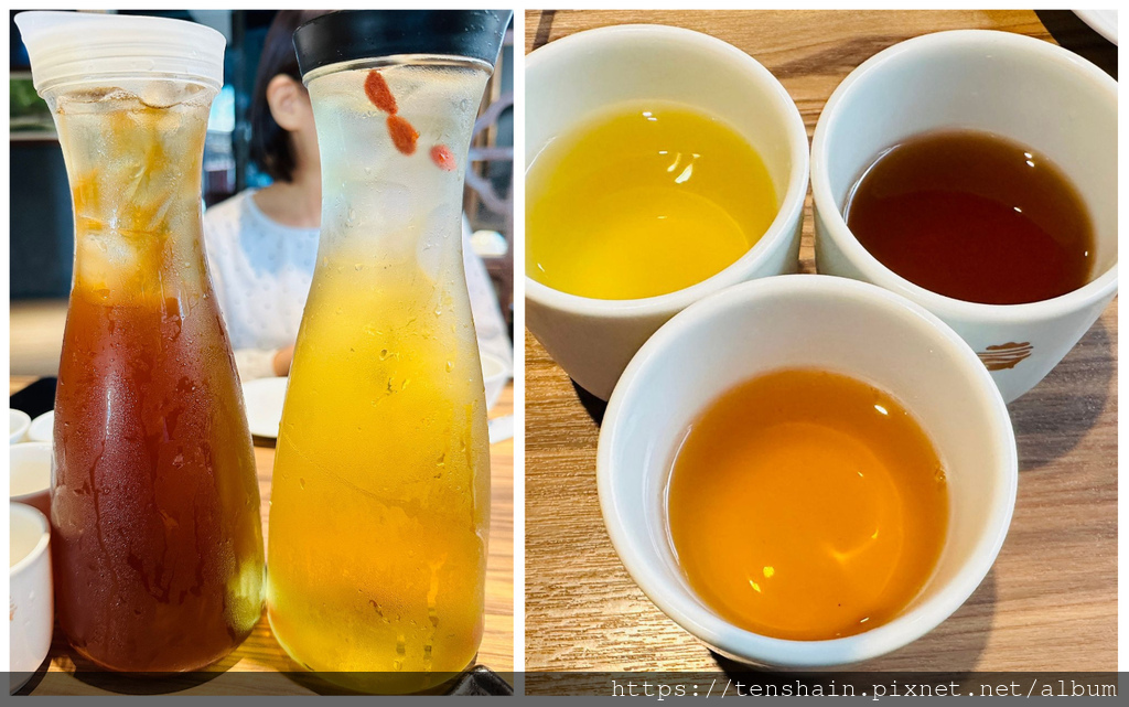 冰釀菊花茶,NT$150,淡淡的菊花香、淡淡的甜,用來解「漢方麻辣」湯的麻辣很有效。桂花烏梅釀,NT$150,酸酸甜甜,帶點桂花烏梅香氣,是我們吃火鍋必點的飲料。另外的一杯是熱茶,免費一大壺無限續。