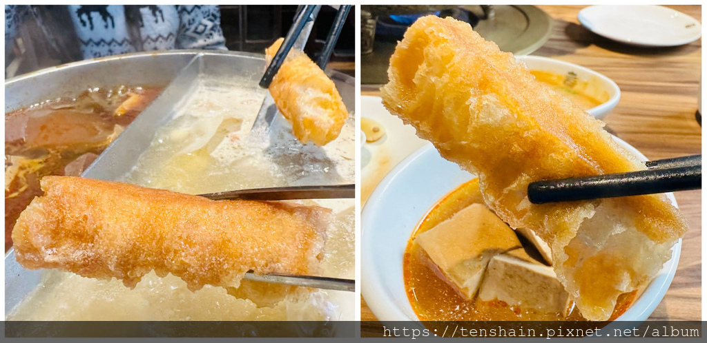 小女兒偏愛麻辣口味,也喜歡脆一點的口感,所以油條只浸 3 秒就吃;我偏愛吸飽湯汁,軟一點的口感,煮個一分鐘,吃起來軟糯有味,油香迷人。這份老油條品質夠好,軟脆皆宜。而且誰說老油條只能配麻辣鍋?我把它浸在「膠原鈣骨」湯裡,一樣滋味可口。