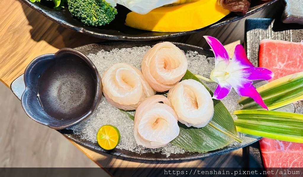 不僅造型美觀,在如何讓食材得到最好的口味上,「岩漿火鍋」顯然也下足了心思。花朵形的深碟裡裝的是米酒,將雪花魚卷浸在酒中再煮,就是一個別出心裁,而且真的有實際效果的設計。你完全不必擔心因此會有酒駕的問題,因為魚卷放入滾燙的火鍋裡,酒精很快就會揮發掉,只留下酒香,增添魚肉的鮮甜。