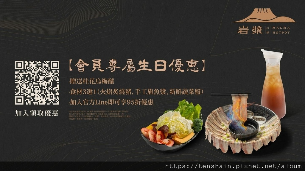 不管你到「岩漿火鍋」的哪一家分店,都有生日優惠,贈送的東西非常有誠意,想慶生的朋友,強烈建議把「岩漿火鍋」列為首選,因為這裡的餐點好吃,又有「火焰炙燒豬」可以邊吃邊玩,氣氛保證嗨翻天。