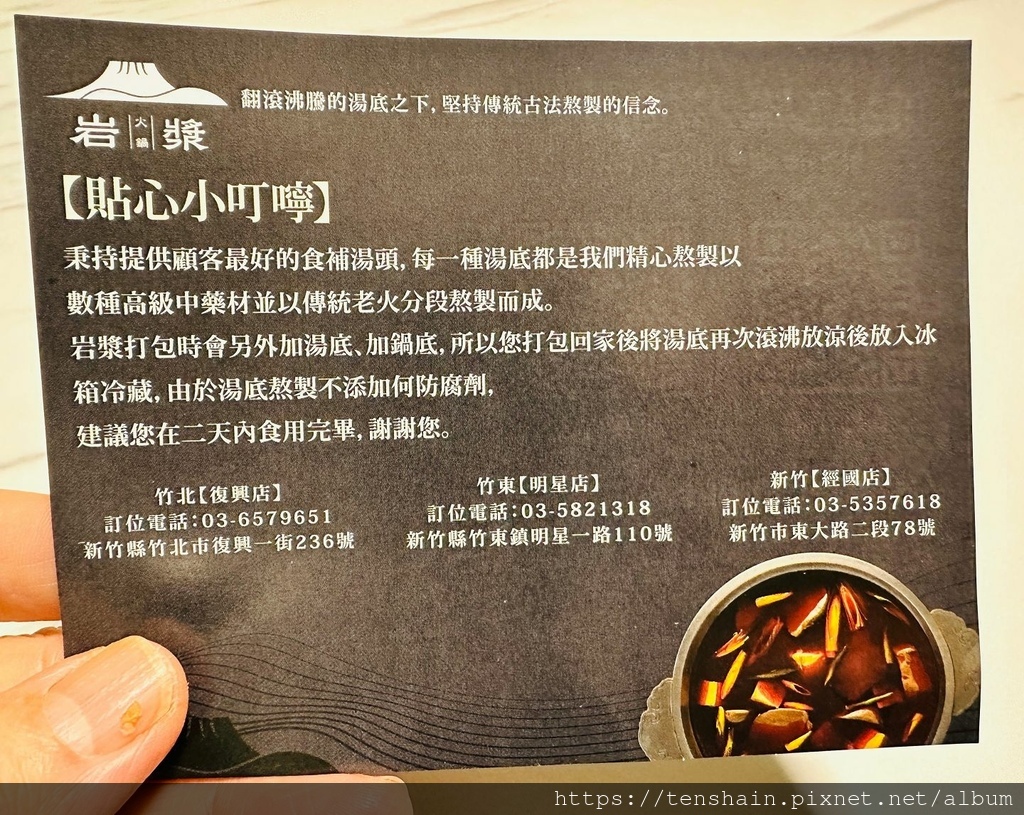 我們吃過的火鍋店很多,會主動幫忙打包的不是沒有,但是會附上打包湯底說明的還是第一次遇到,可見「岩漿火鍋」很用心,照顧到每一個小細節。花一餐的錢,可以吃到豐盛的兩餐,「岩漿火鍋」的 C/P 值,你說高不高?