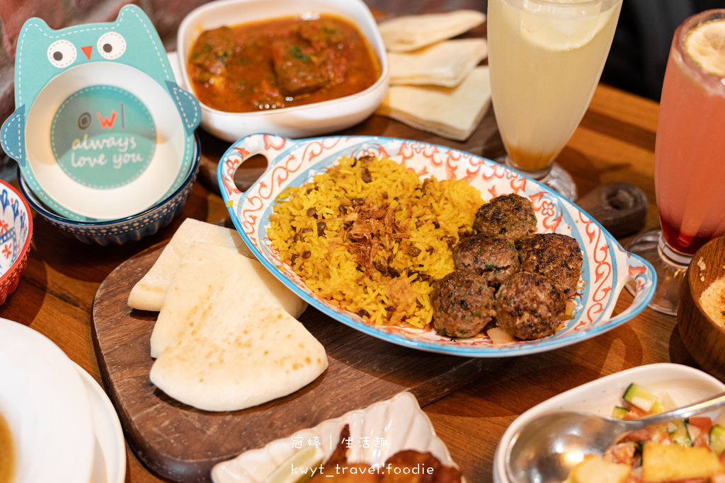 手工製作的牛肉丸、羊肉丸以烤製的方式烹調,讓原有的肉鮮味之上多了一重淡淡的烤香,搭配著粒粒分明、口感層次豐富的香料飯一起吃也蠻不錯的。