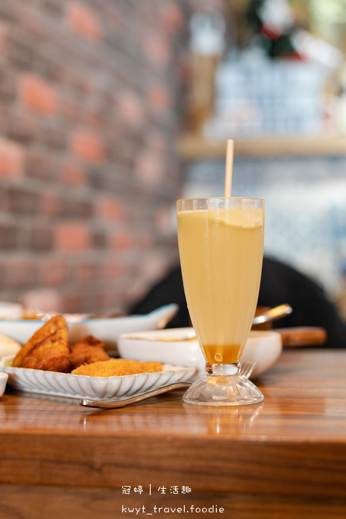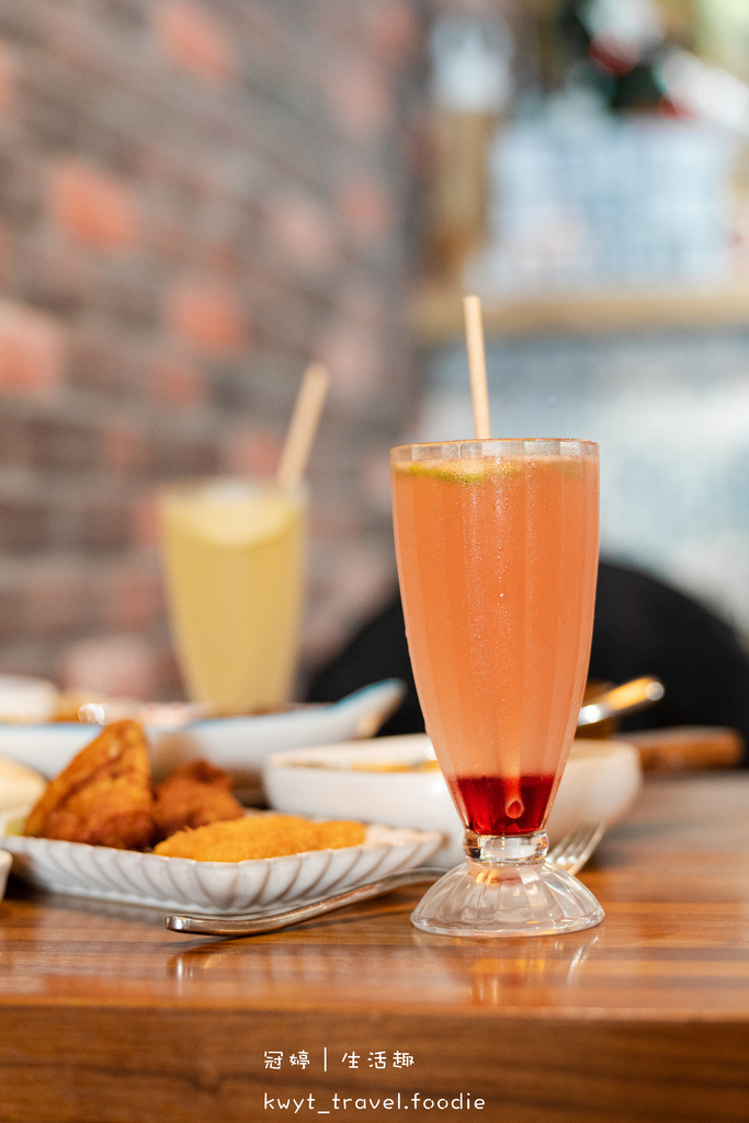 甜度略高,冰冰涼涼的氣泡感,有加入鮮切檸檬片增添整體水果香氣,蠻適合微熱聚餐時來一杯,搭配餐點一起享用。