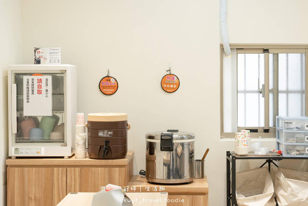 湯碗、筷子、湯匙、飲品、湯、外帶湯碗、免洗餐具、置物籃均可在自助區自行取用。
