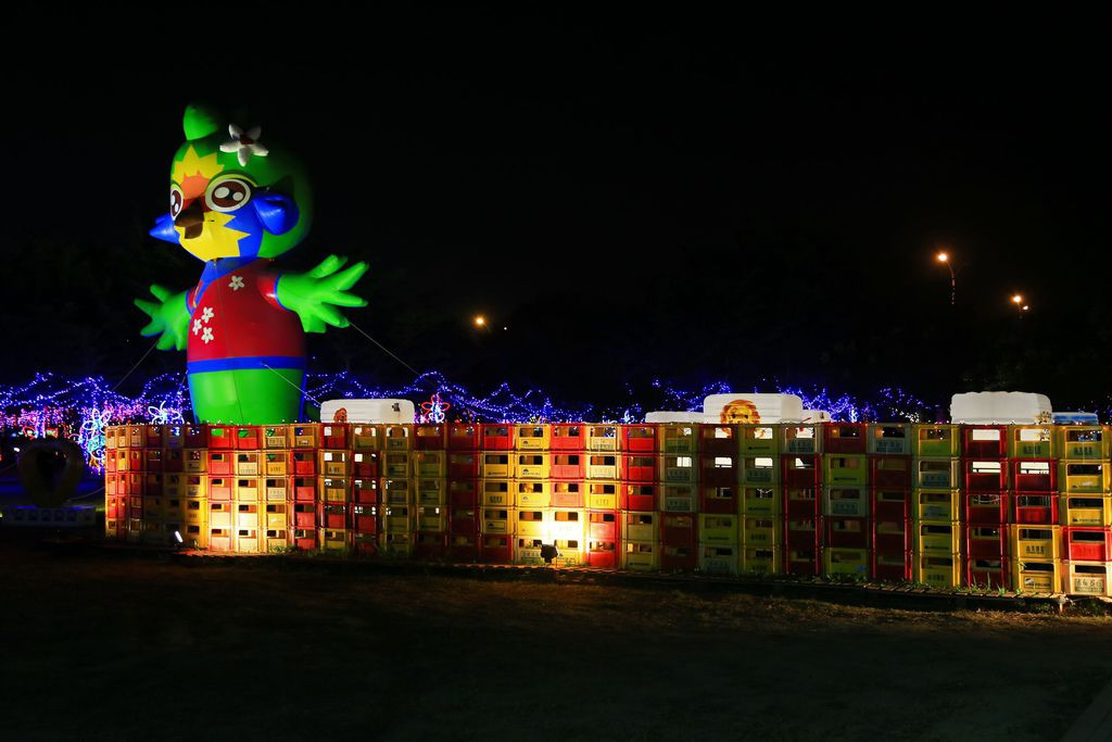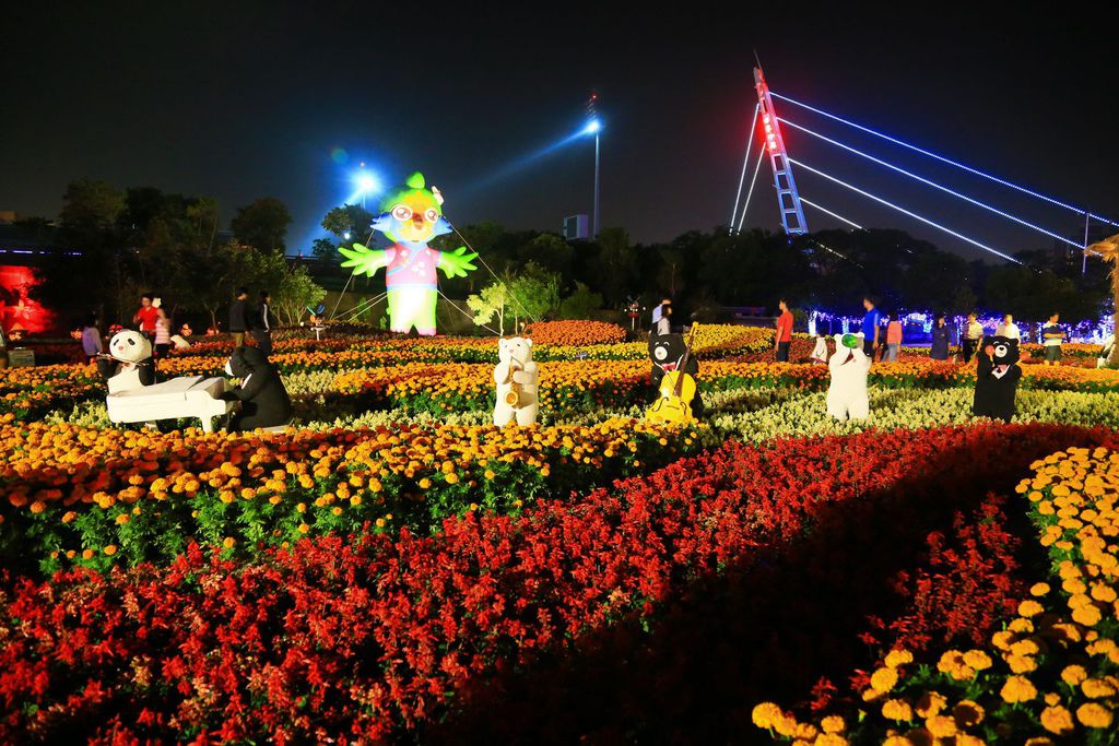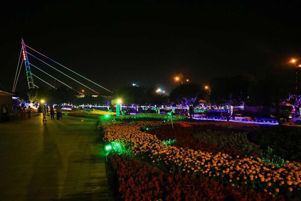 以繽紛的斜張橋為背景,搭配花海和安全島上的花燈,最後就以這張結尾。
