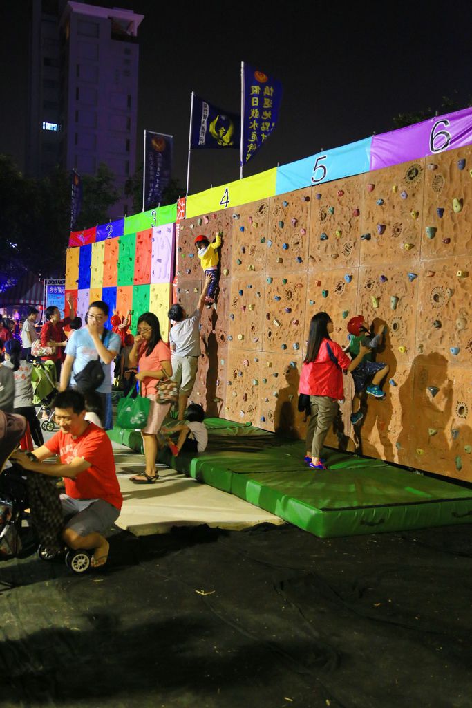 旁邊有給大小孩放電的小攀岩牆。