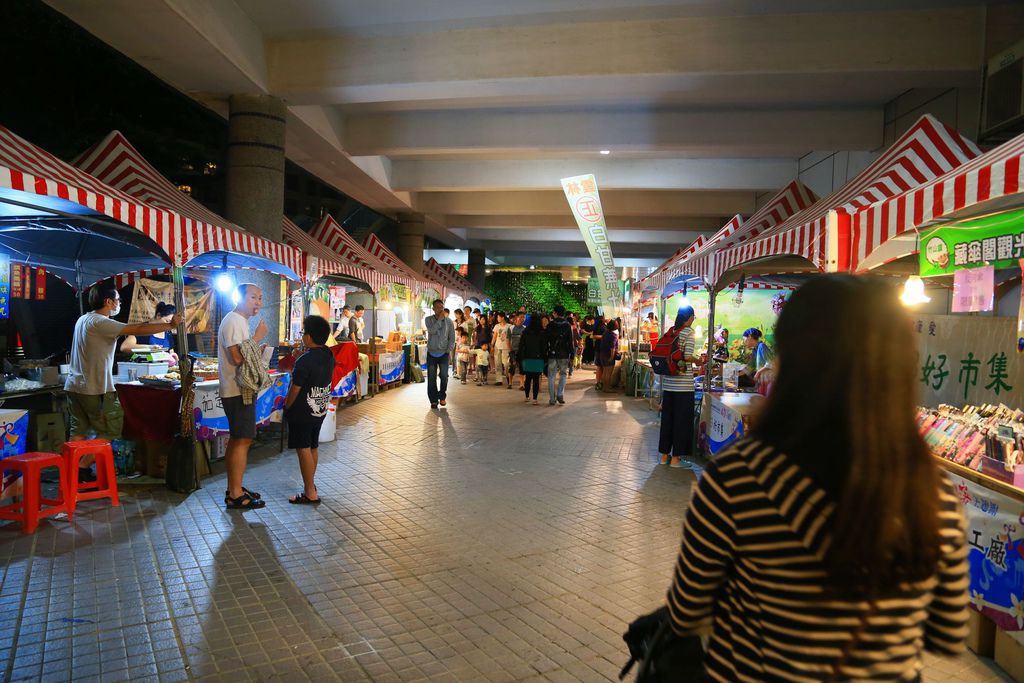 游泳館和體育館的騎樓下是滿滿的攤販,吃的、喝的、用的都有。