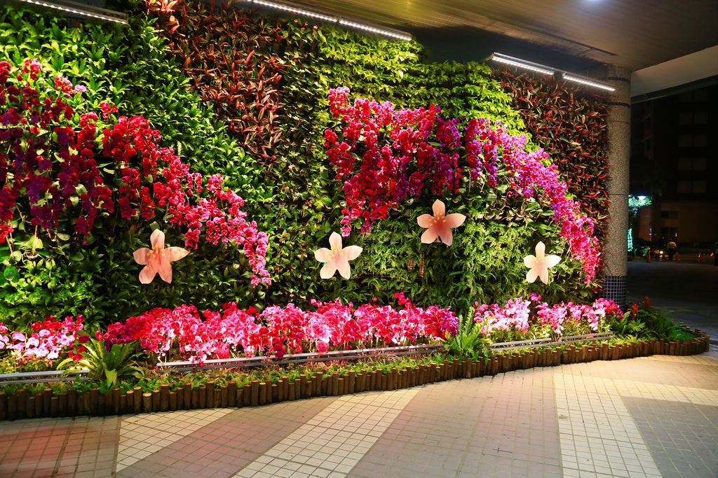 體育館入口前的一整片花牆。
