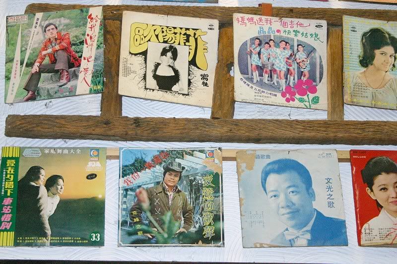 牆上有不少民國四、五十年代的老唱片,顧不得把老婆冷落在一旁,拼了死命的