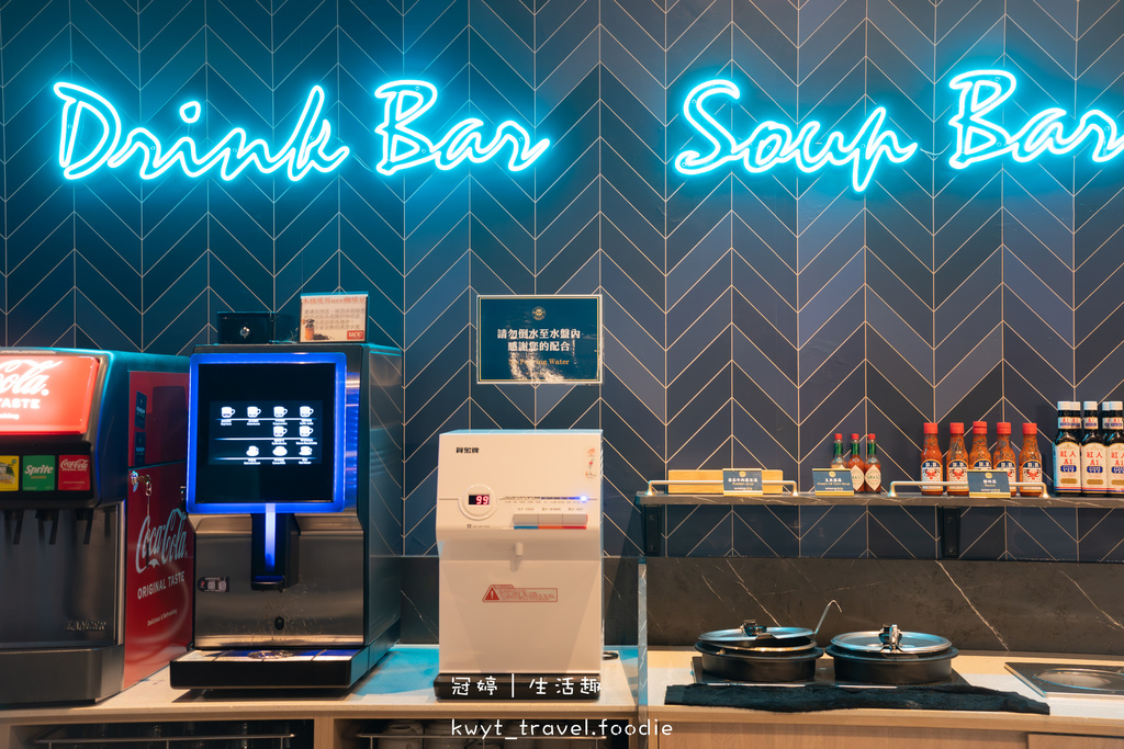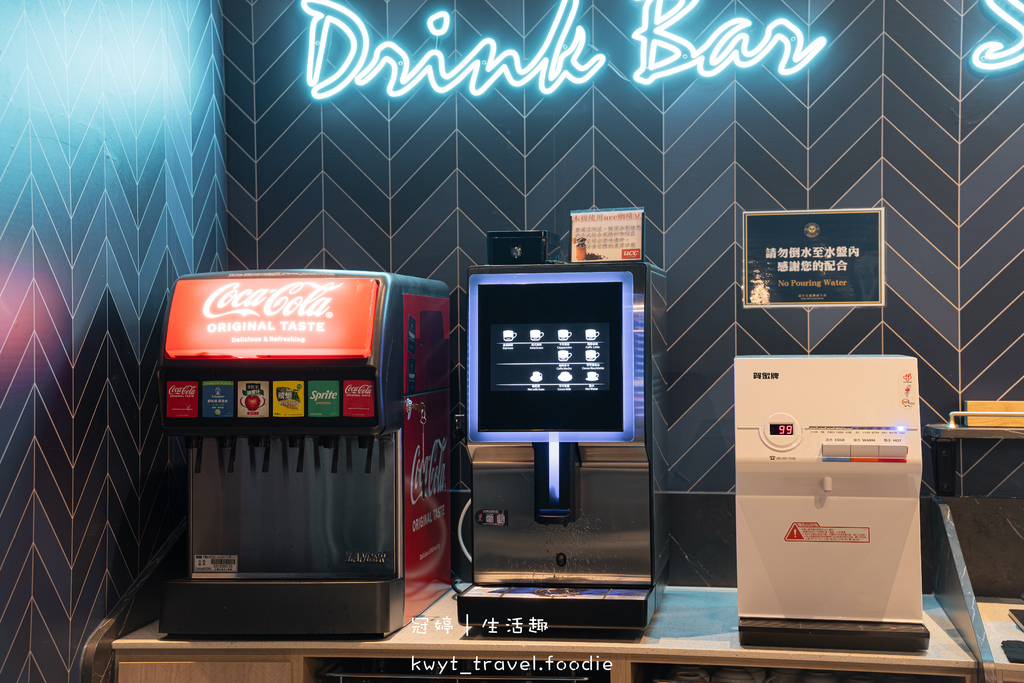自助吧整潔維持的相當不錯,氣泡式飲品機、UCC咖啡機、冰溫熱開飲機的接水盤、湯品周邊都蠻乾淨的。