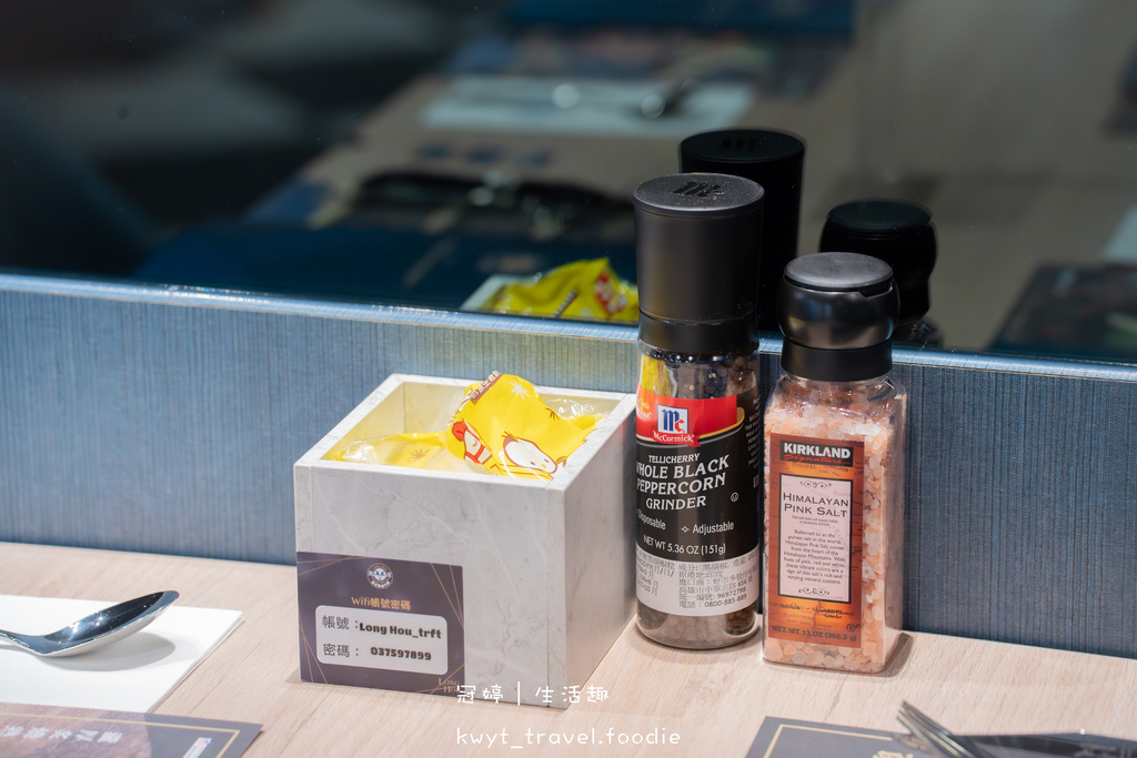 每張桌面上均有放置紙巾、黑胡椒粒罐、粗粒玫瑰鹽罐,方便用餐時就近取用。