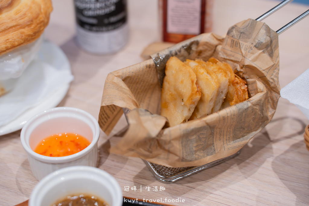 咬一口吃到了金黃外皮的酥、脆、香,與滿溢在嘴裡的蝦子鮮香,可搭配主廚特調醬汁增添風味層次。