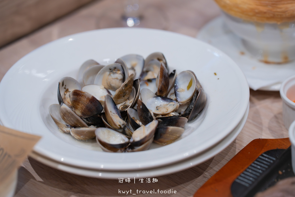 以主廚特調蒜蓉醬爆炒過的蒜香蛤蠣,每一顆的肉質皆十分飽滿,入口就爆鮮!