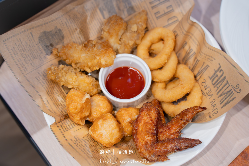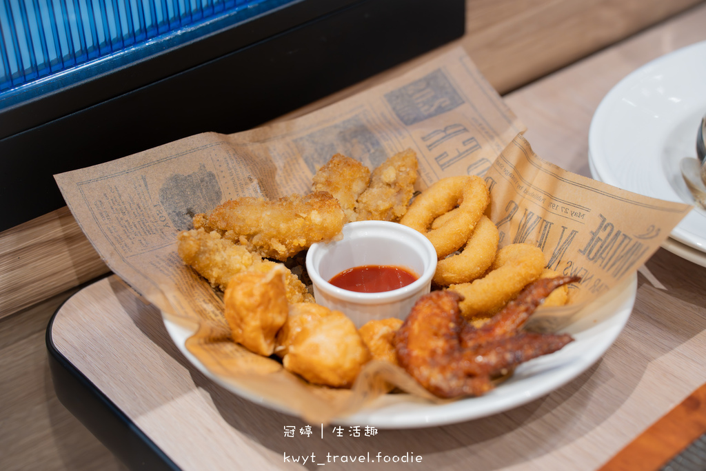 經典薄脆雞翅、酥炸魚柳條、黃金洋蔥圈、酥脆花枝丸通通有,烹調的時間、油溫控制的相當不錯,完全沒有過油的感覺,是香而不膩口且保有各自口感的。