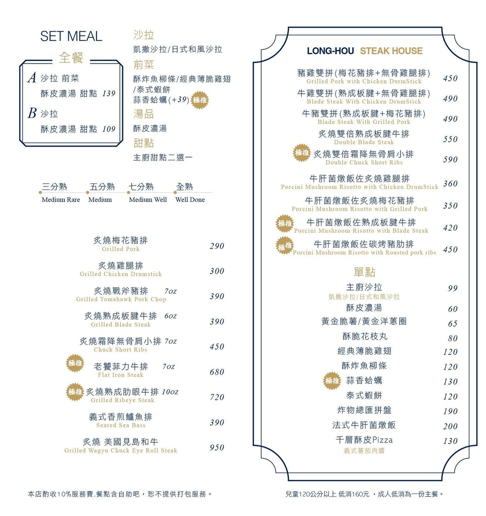 瀧厚炙燒熟成牛排苗栗頭份大潤發店菜單