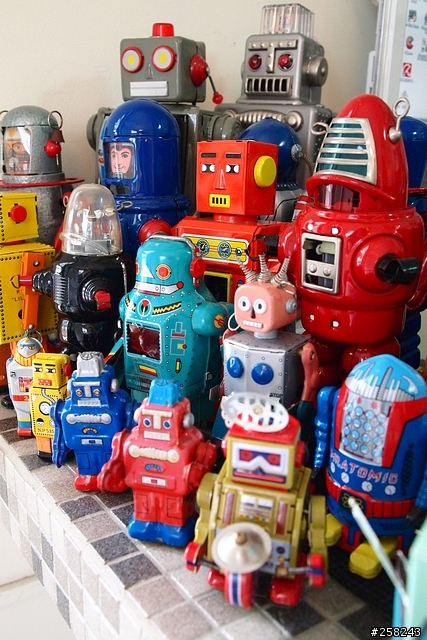 櫃檯旁邊擺了一大堆機器人,如果想看機器人可以去"鐵皮駅",那邊超多。