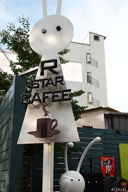 在台中有一家很有名的機器人咖啡廳,店名叫做"鐵皮駅ROBOT STATION",有一陣子還蠻常去的,裡面有各式各樣的機器人,很有趣!不過我發現我竟然從沒寫過有關他們的食記XD話說有一天我騎車經過忠明南路,就被一隻很大很大像兔子的東東給吸引住,心想有一天一定要前來看看,這天一踏進來就覺得那種fu和"ROBOT STATION"好像,果然不出我所料,這是"ROBOT STATION 2"或稱作"R STAR CAFE",姑且就把這個東西當作外星人好了。