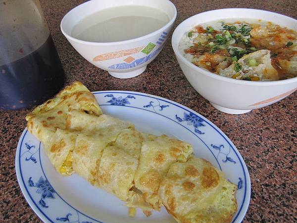 老闆送上時,發現分量十足,一問之下,原來老闆的蛋餅都用掉一顆半的蛋,盤子都要裝不下了,很有誠意的大蛋餅