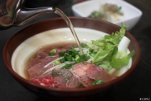 服務人員隨後就會拿以蔬果+牛大骨熬煮的清湯淋上去