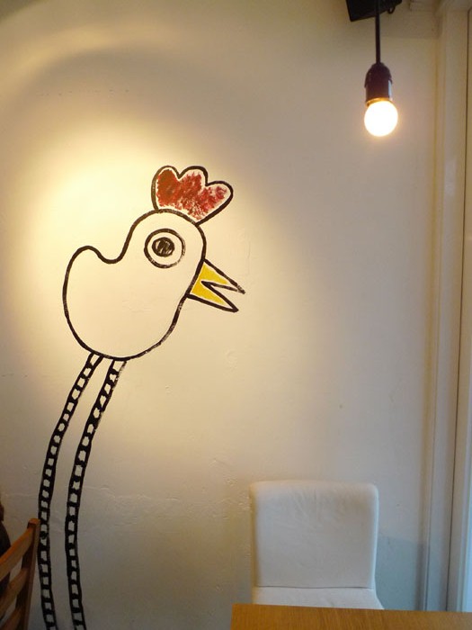 可愛的壁畫,而且他們店內的燈都很妙,只有燈泡垂降在你的頭上XD
