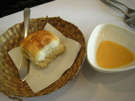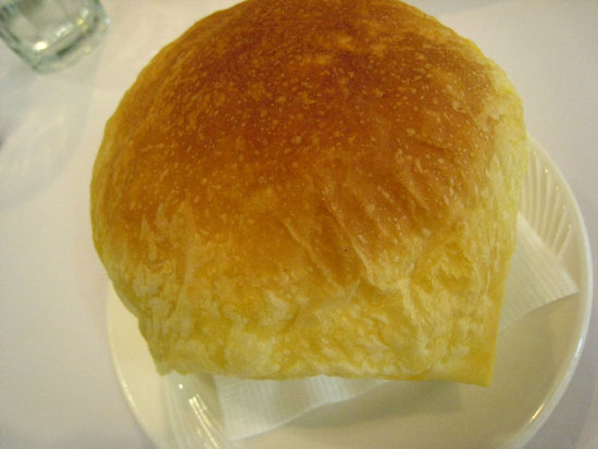 強生的麵包上桌了~麵包醬的味道類似千島醬,吃起來感覺怪怪的@@
