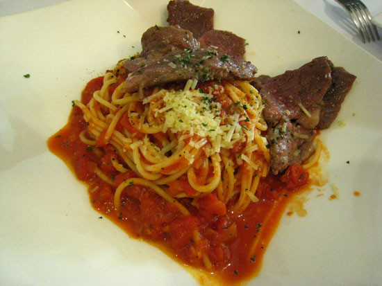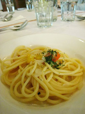 排餐附的義大利麵,小小一盤的份量先讓客人墊墊胃,但味道有點淡。