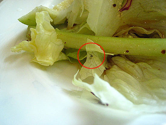 正當大家努力嗑沙拉的時候,小吠右手邊的Penny又發現了她的沙拉有「意外的訪客」,