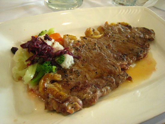小吠點了嫩煎紐約克牛排($548),附有酥皮湯、義大利麵、沙拉、甜點、飲品,