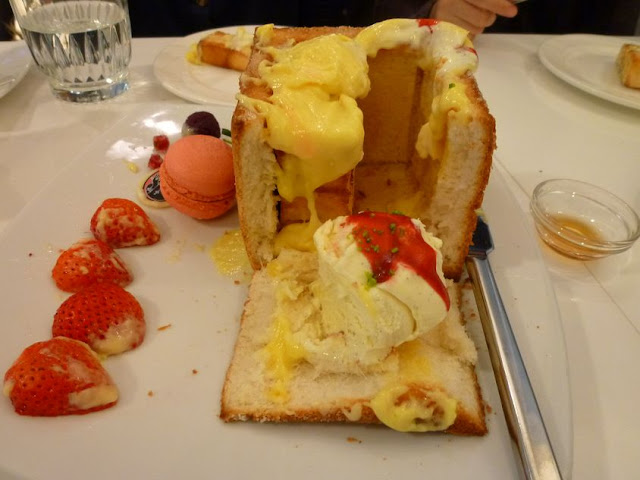 再來蜜糖吐司又有滿滿的卡士達醬料,飲料又點奶茶....整個就是很"奶"的一餐,