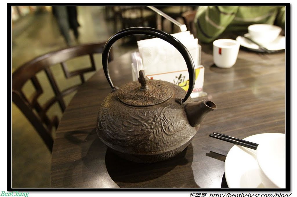 每桌都會上一壺茶,壺身有些重,上面的雕刻相當精緻