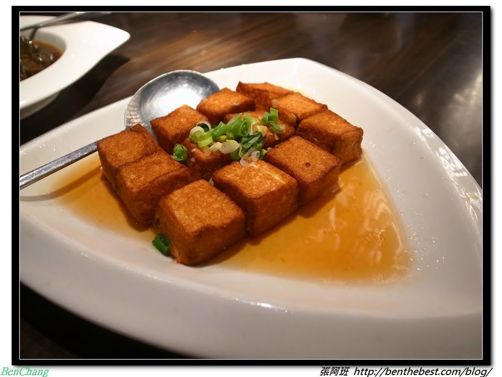 豆腐本身相當的嫩,可是表面卻帶了一種很特別的口感,介於酥與軟之間,但是卻不會有爛爛的感覺,口感相當好。整口吃進去可以說是酥軟嫩兼備。