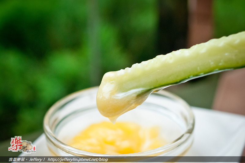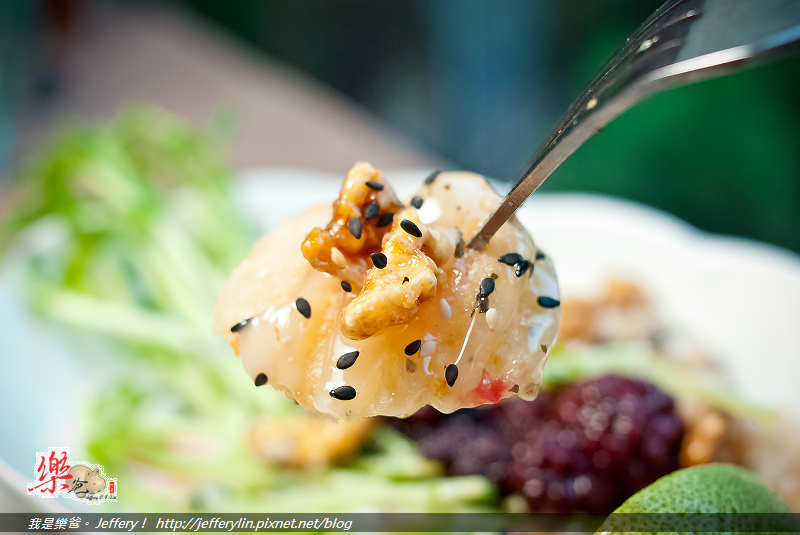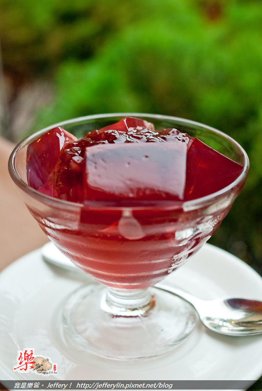 另一道甜點是"酸梅果凍", (如上圖), 這果凍有種滑Q的口感, 也是屬於酸甜的滋味, 很爽口, 不過樂爸還是只嚐了二三口而已, 沒辦法了。
