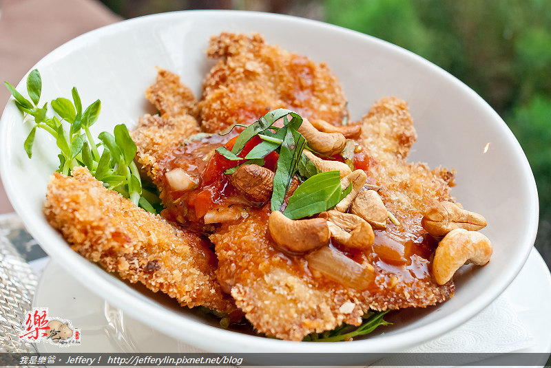 接著這道是樂媽點的"拿波里香酥腰果嫩雞飯", (如上圖)。