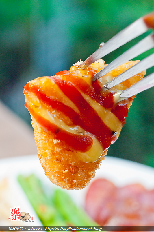 而這薯餅也是外酥內軟, 由其是搭著上頭的沾醬, 口味倒是還不錯。