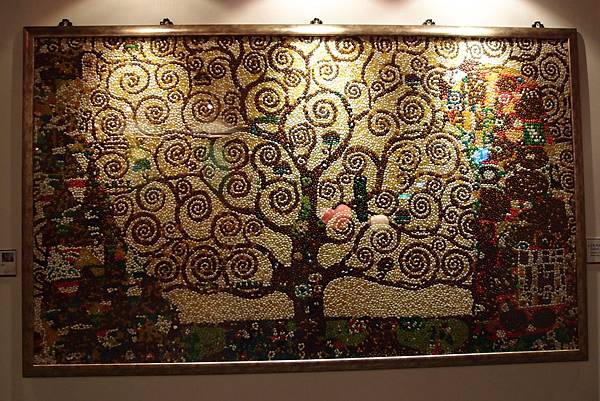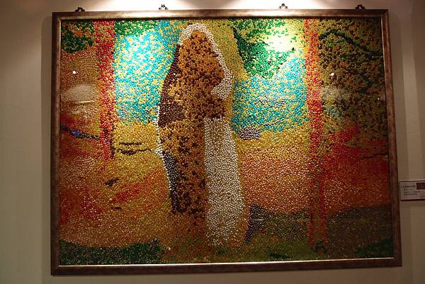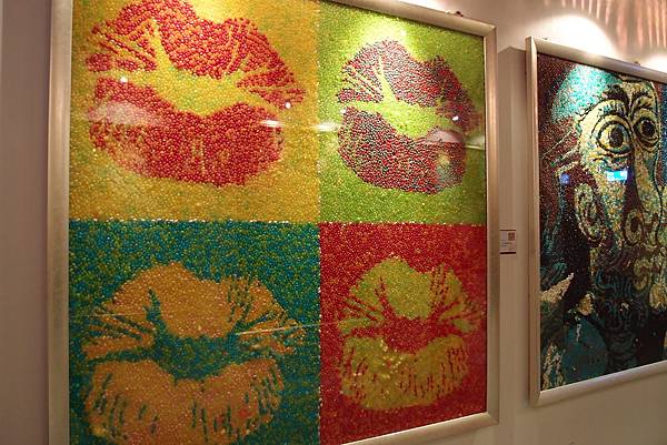 現場展出了一系列、共十幅,由40萬顆雷根糖拼貼出來的世界名著!