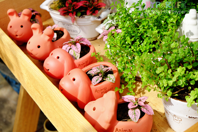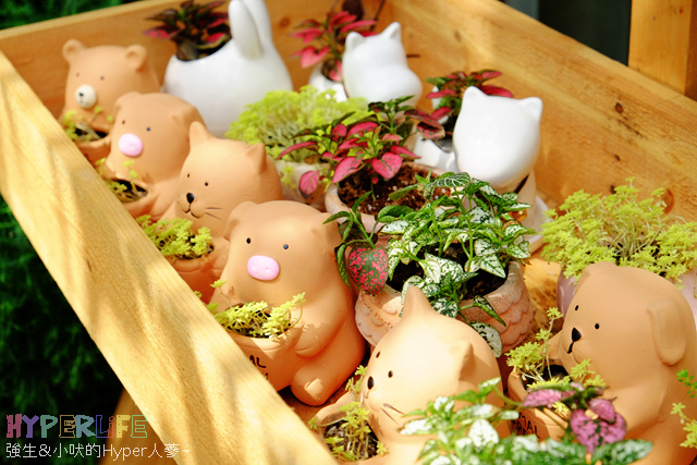 不過先吸引到目光的,是大門旁的木作枱上有著好多不同動物造型的可愛花器。