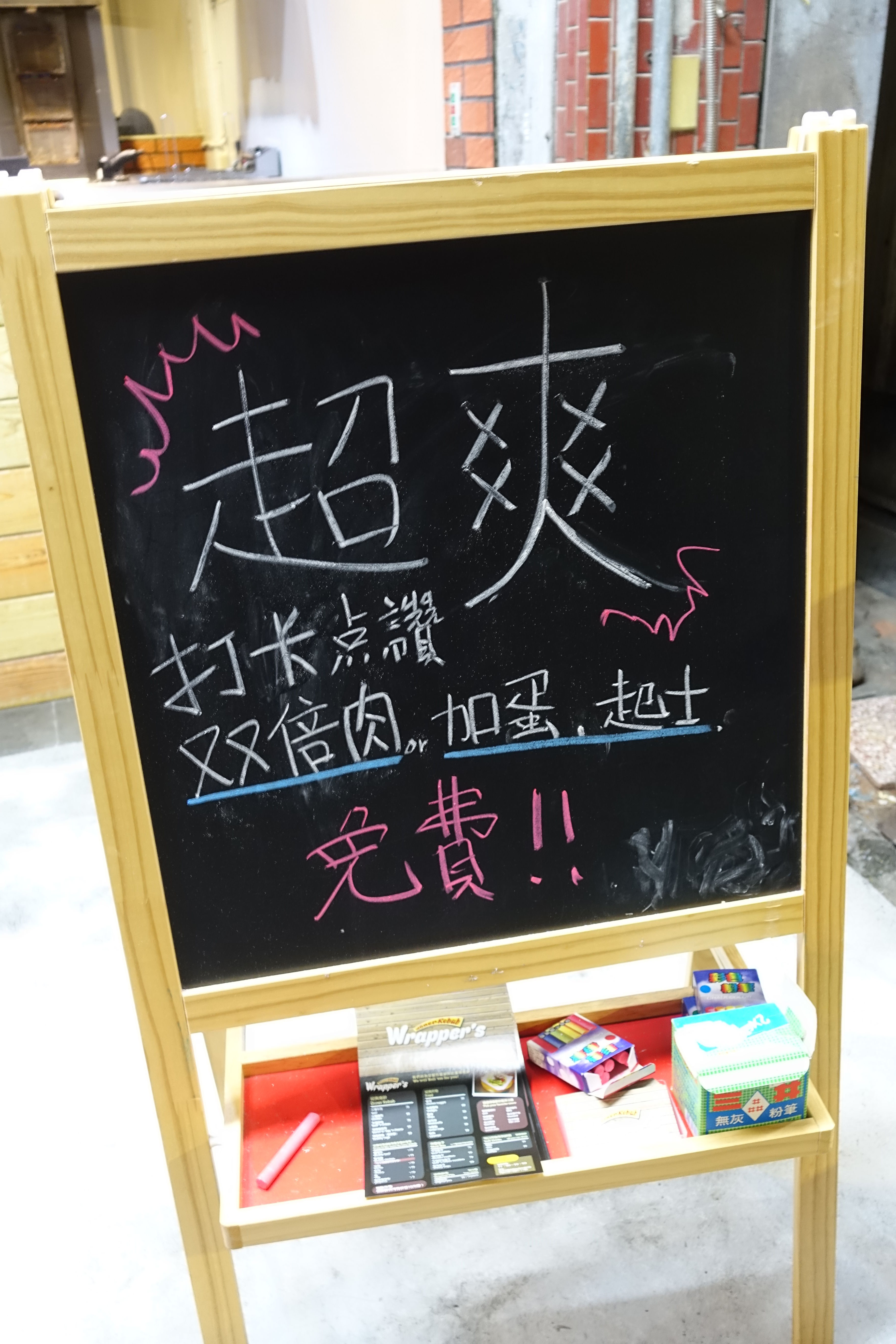 當天去的時候剛剛好有『超爽』的活動啦,只要在Wrapper's粉絲團打卡按讚,就可以享有免費升級雙倍肉或加蛋加起司哦!!!而且這個活動還沒有寫下截止日期,大家近期可以快點去享優惠吃美食搂。