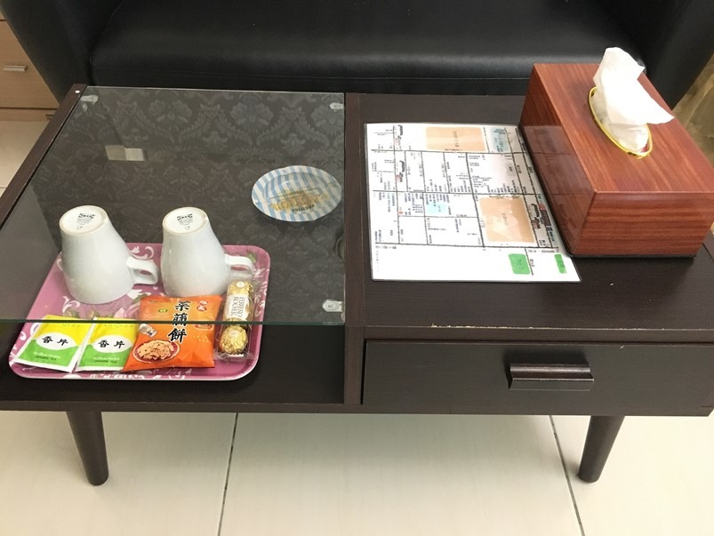 在沙發前的小桌子還有附贈金莎跟小點心XD 退房的話也是簡單把門反鎖,鑰匙放在這小茶几上即可。