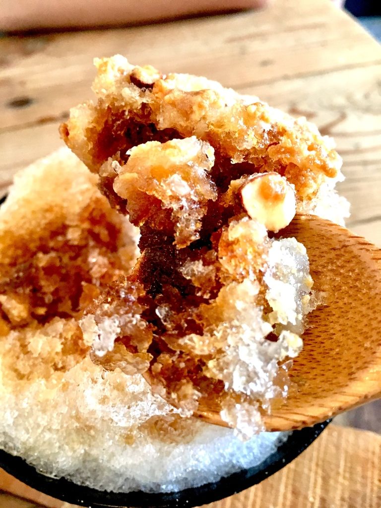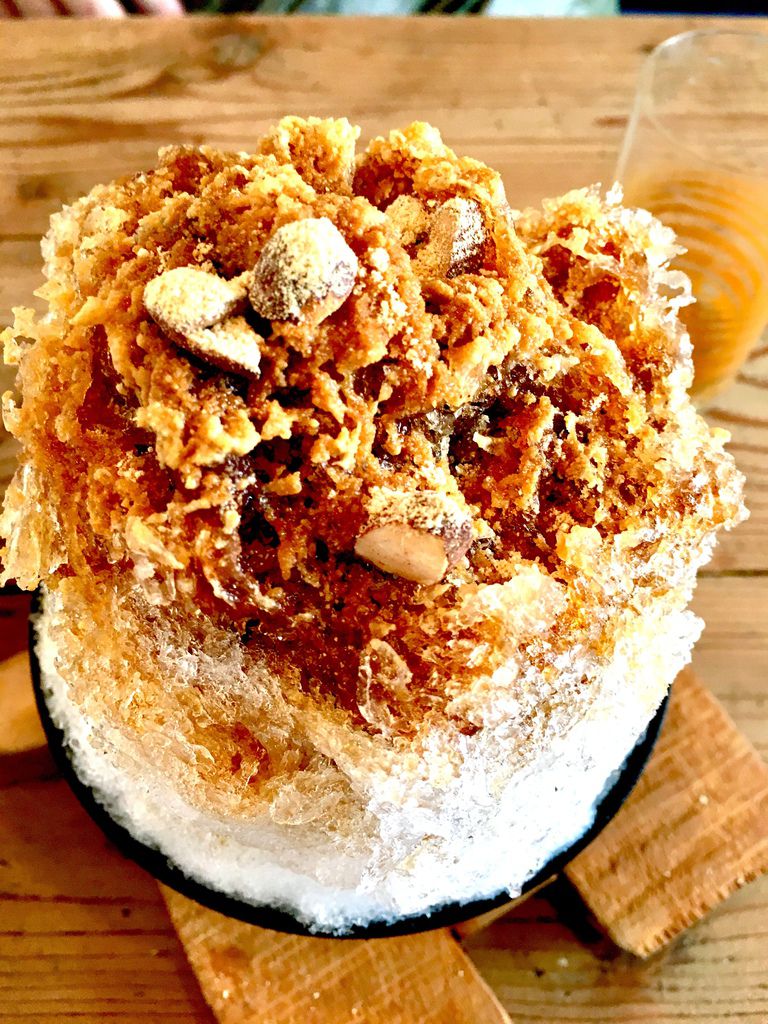 蜂蜜檸檬雪鹽冰有著跟他名字不對稱的簡約外貌,如果你喜歡鹹檸七這一碗絕對是你的菜!剉冰上的兩片檸檬稍微鹽漬過,沾鹽的清冰超級消暑的啦!從頭到腳的那種,而且好清爽;蜂蜜檸檬在一旁的小杯子裡,自行酌量加入。