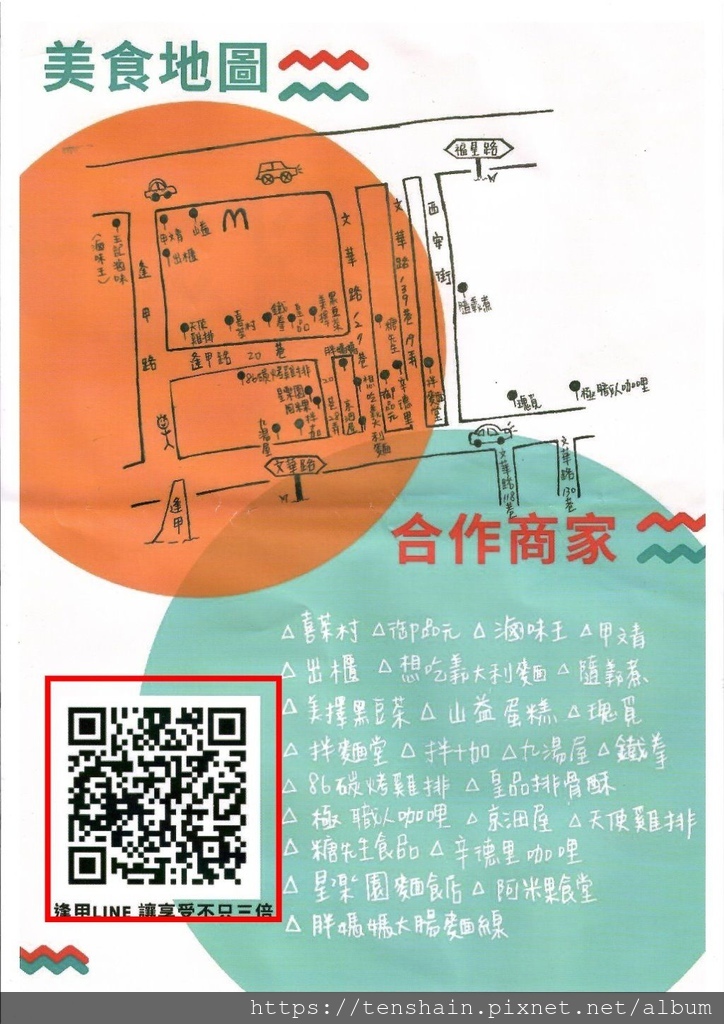 從逢甲夜市的第一攤開始,一整圈吃下來,吃得肚滿心足。上圖是「吃貨以時間換取空間之逢甲夜市吃透透兩天一夜之旅--Day 1」的美食地圖,如果你也想和我一樣,利用逢甲夜市推出的「放大你的振興券」活動,好好的大啖逢甲夜市的美食,歡迎你按圖索驥,跟著我的腳步,勇敢的踏出探索的腳步吧!