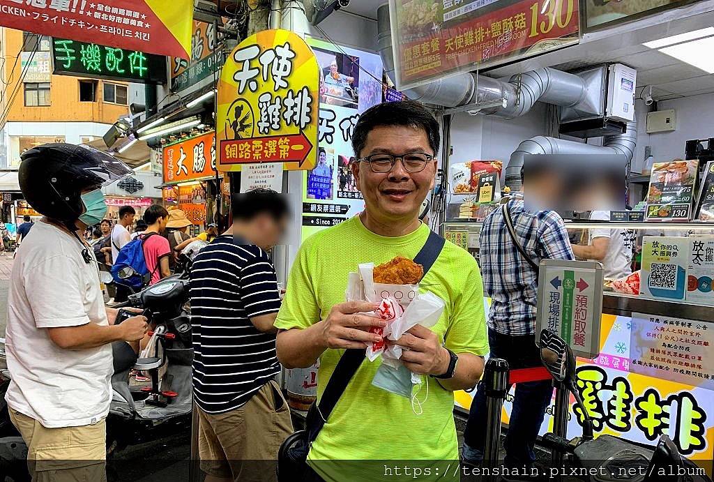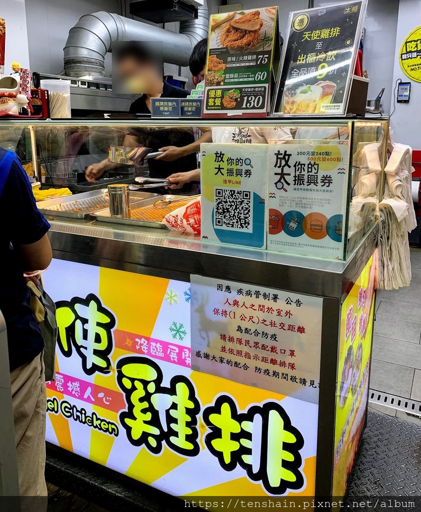 買完飲料,趁著夜市人還不多,趕緊來買天使雞排天使雞排逢甲夜市火紅的程度,從他們竟然還有專門舉牌維護排隊秩序的員工,就可窺之一二。